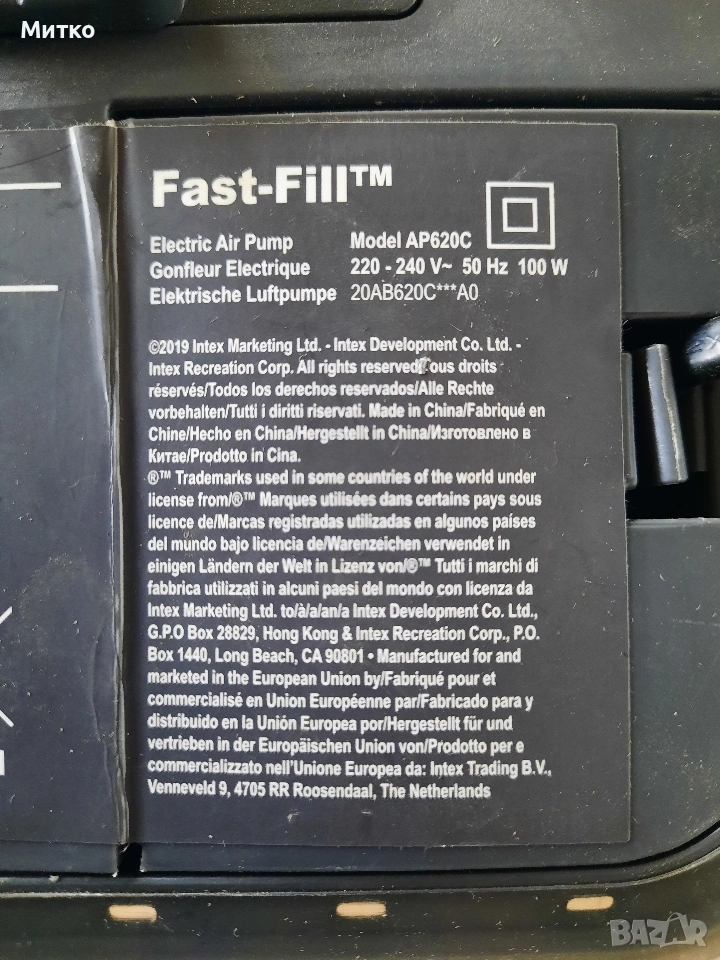 Електрическа помпа за надявам дюшек INTEX Electric Air Pump Model AP62OC → Обява 53611955