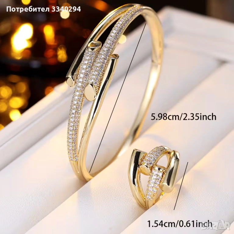 Комлекти включваща гривна и пръстен с модерен и елеганте дизайн. Идеални както за ежедневно носене, така и за специални поводи. Отличен подаръка за любим човек