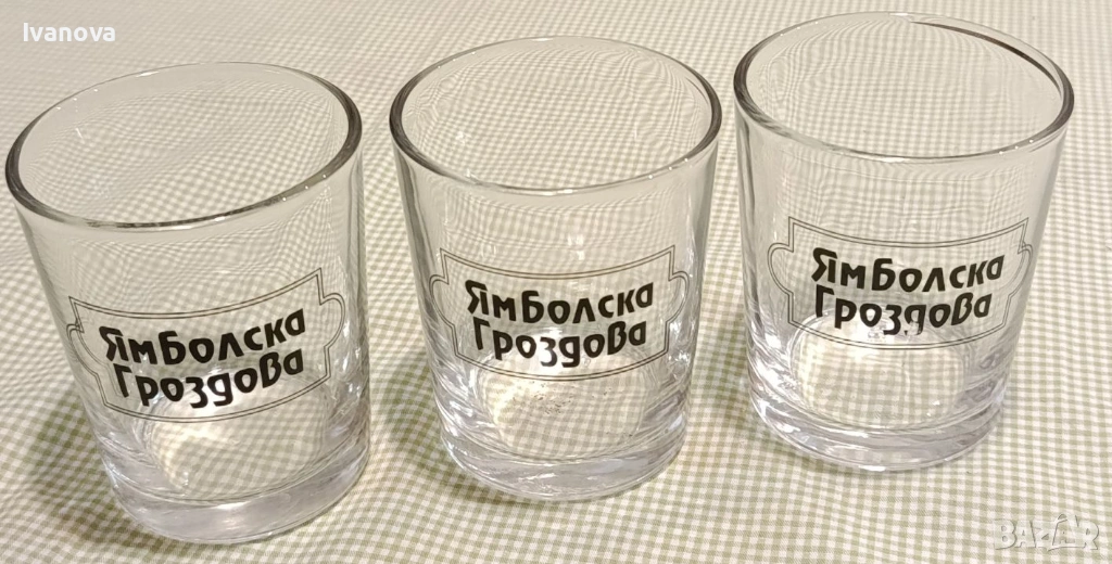 ракия“ Ямболска гроздова“ 3 бр. с размери: диаметър 6.5 см. И височина 8 см. Цена 3.50 € /6.85 лв за трите бр.