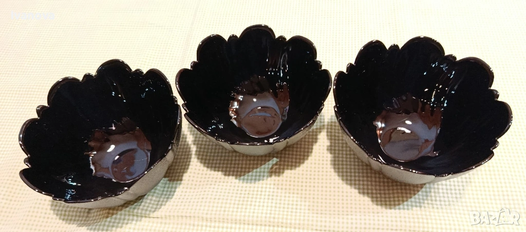 кристални малки черни купички, НОВИ ръчна изработка за ядки 3 бр. Размери: