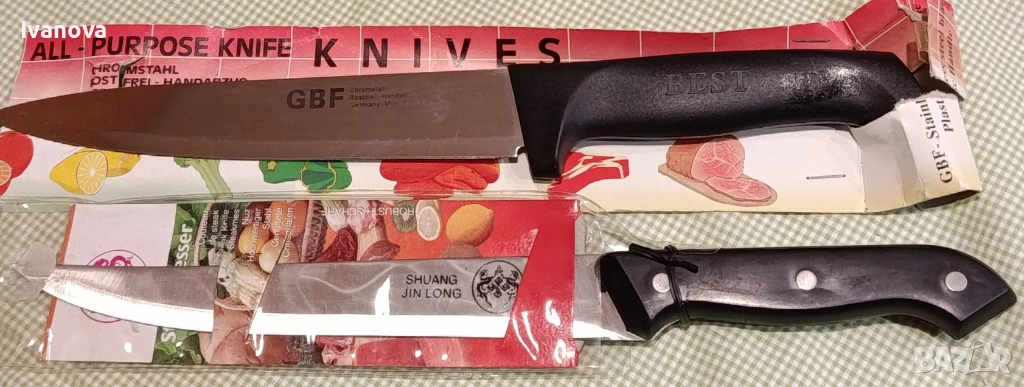 7./Два нови качествени кухненски ножа на марките SHUANG JIN LONG и GBF, дължина на острието 19 см. на цена