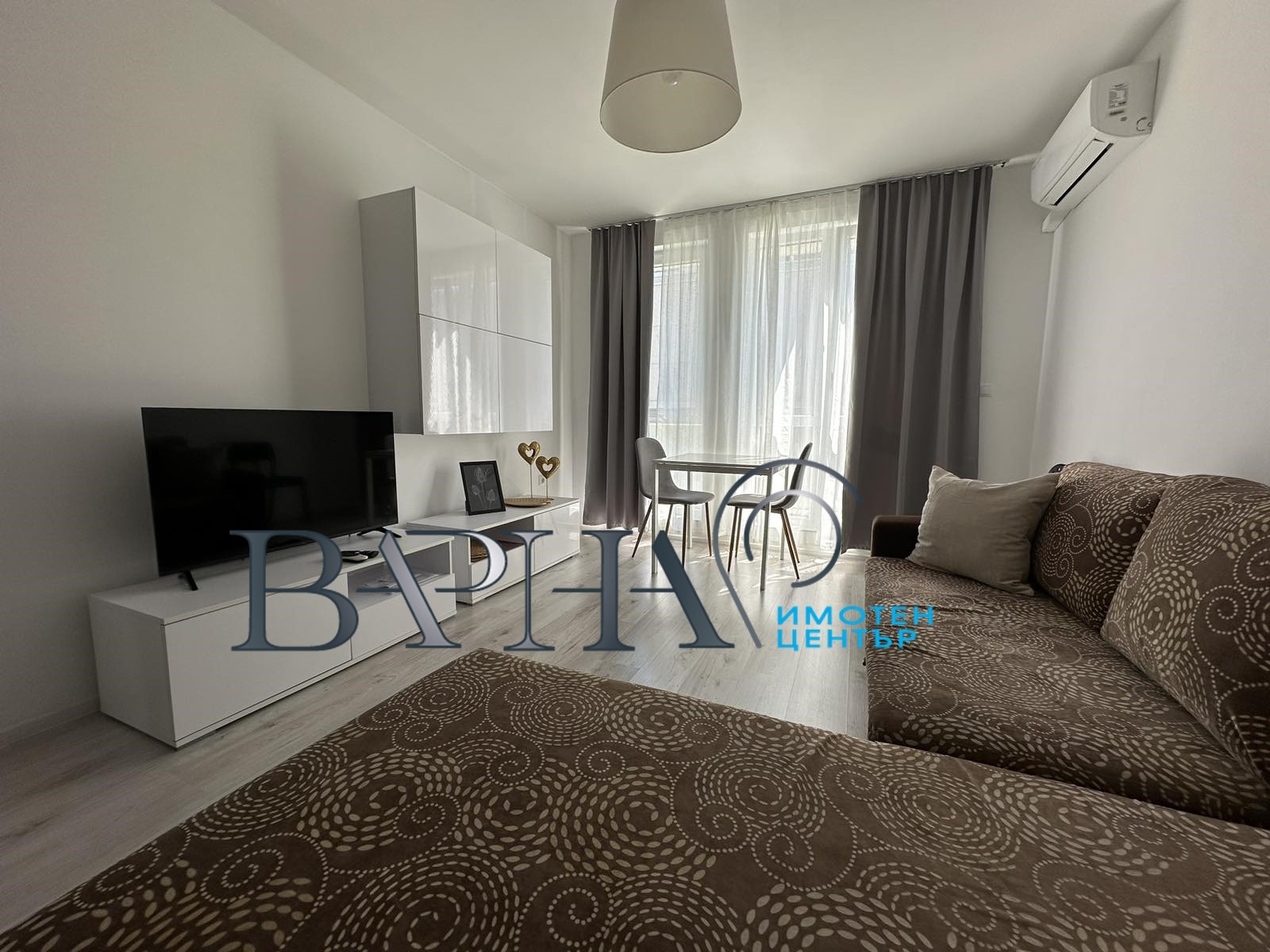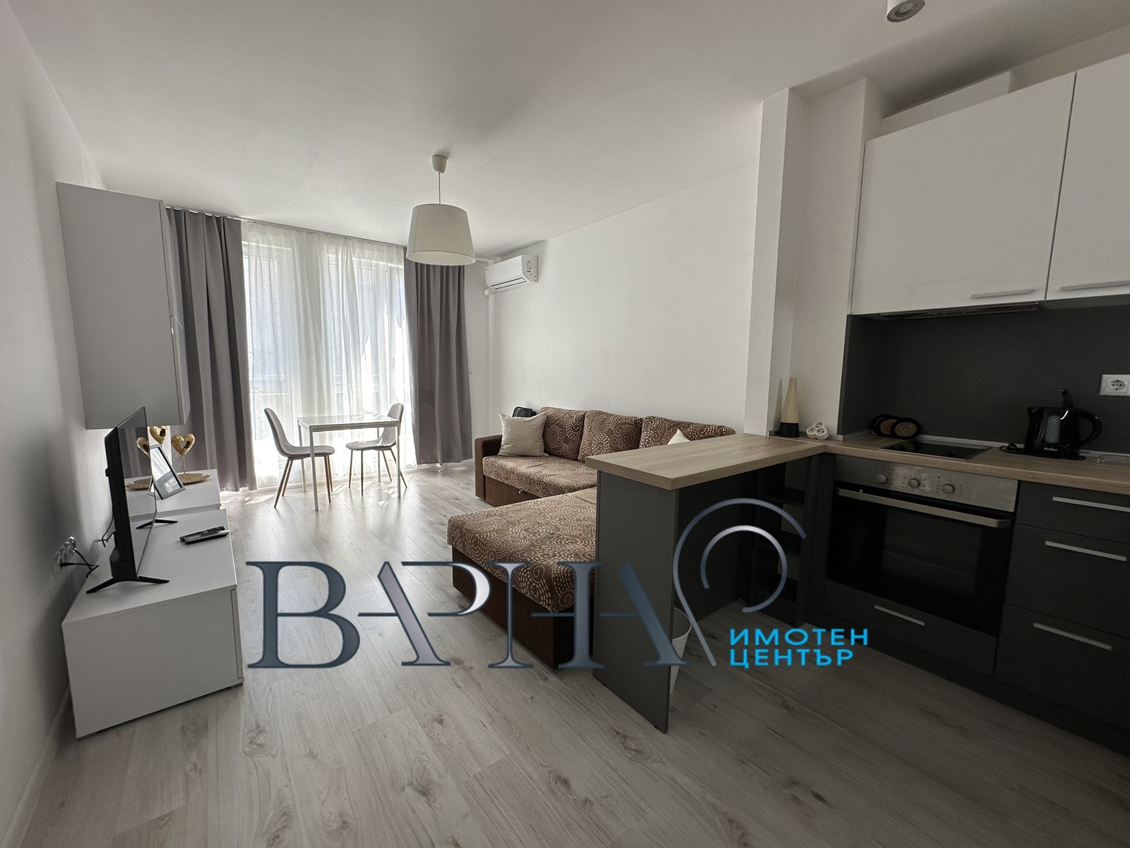 Имотен център Варна представя на Вашето внимание ЕКСКЛУЗИВНО НОВ двустаен апартамент в непосредствена близост до Гранд Мол, разположен на трети висок етаж в нова тухлена сграда с асансьор! Жилището се състои от голямо входно антре, дневна с кухня с излаз на слънчева тераса, спалня с излаз на още една много голяма тераса, както и баня с тоалетна! Имотът е изцяло обзаведен и оборудван с висок клас мебели и електроуреди! ОГЛЕДИ С КЛЮЧ в удобно за Вас време! За повече информация, оглед и други актуални предложения, моя обадете се на 0877 936 835 - Теодор Тамахкяров!