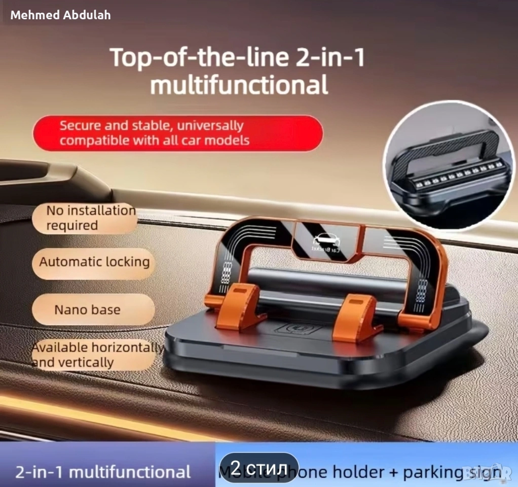 360°въртящ се два функционален държач за телефон с паркинг знак → Обява 53613300
