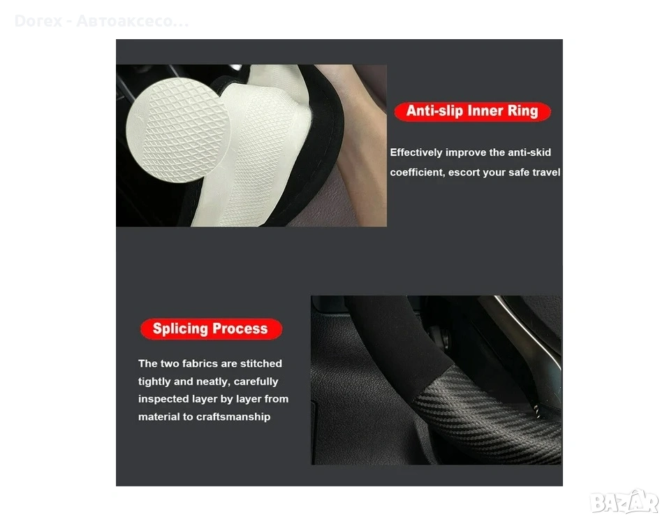 Калъфът е изработен от висококачествени материали без мирис, а здравите шевове от автомобилен тип осигуряват дълготрайна употреба. Монтажът е бърз и лесен — просто поставете върху волана. 🚗