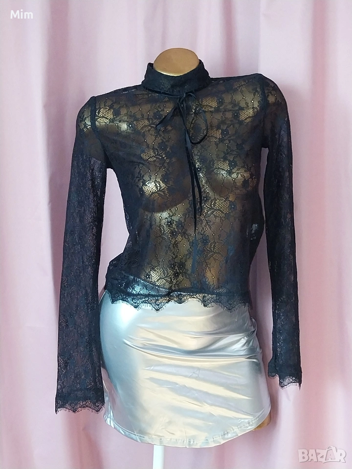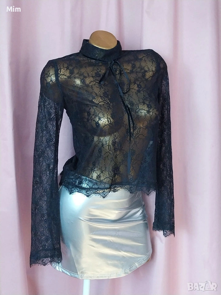 STYLE S Черен дантелен топ с дълъг → Обява 53613697