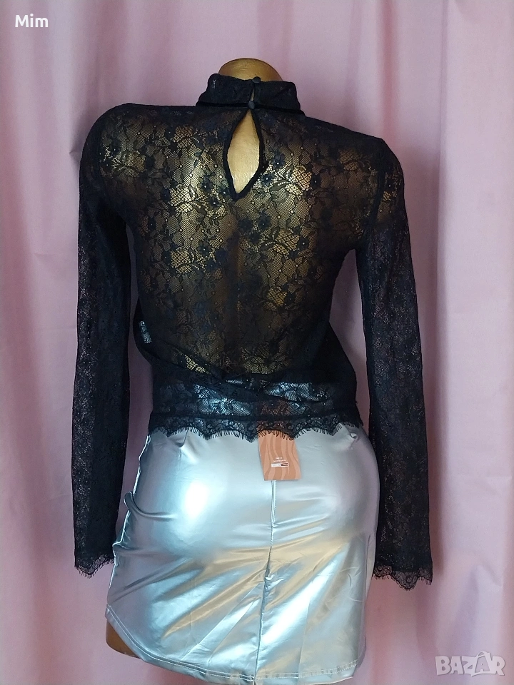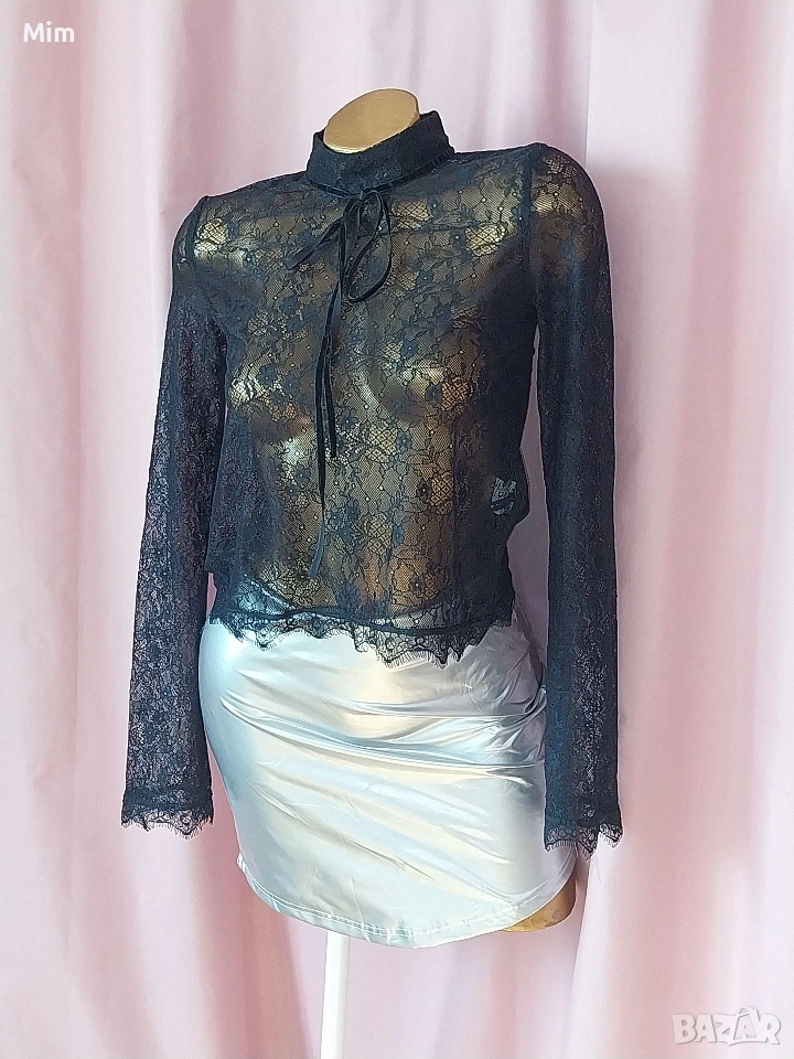 Черен дантелен топ / блуза/ с дълъг ръкав, закопчаването е отзад с копчета .Неразличим от нов. Полата е в отделна обява.