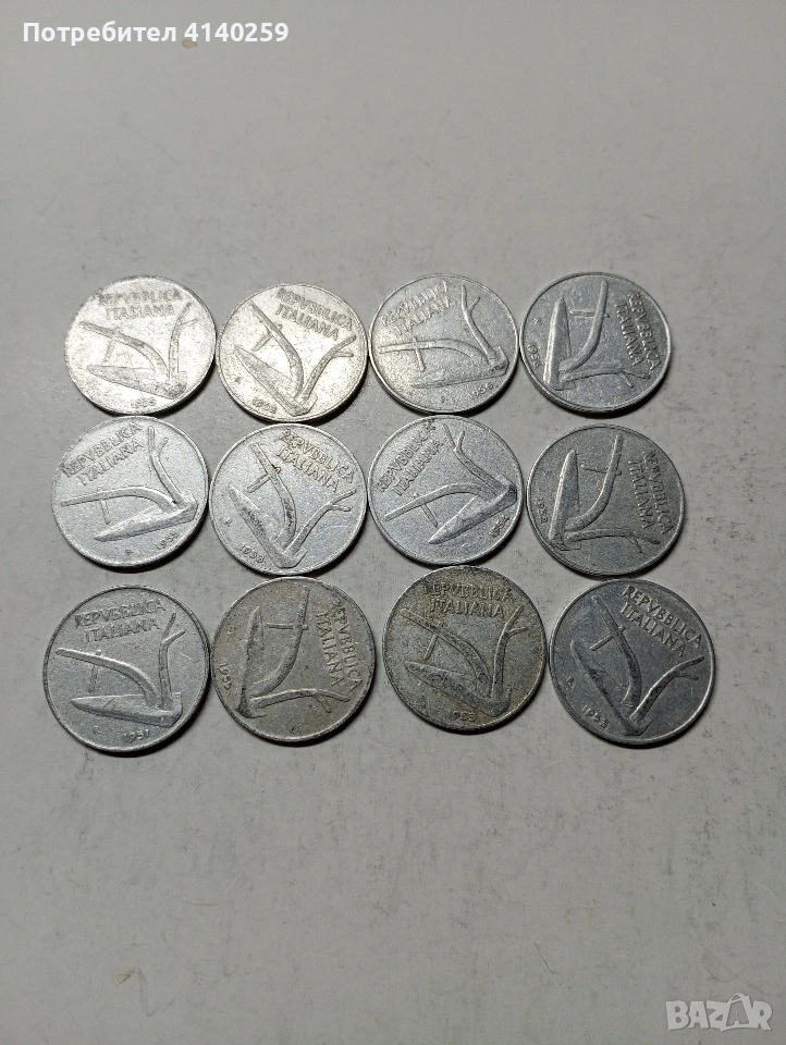 ИТАЛИЯ МОНЕТИ ЛОТ 10 ЛИРИ 1951-1952-1953-1954-1955-1956 Г НЕЧИСТЕНИ АЛУМИНИЕВИ ЦЕНА за 12 БРОЯ СЪСТОЯНИЕ ОТЛИЧНО ПОЛУЧАВАТЕ СНИМАНИТЕ МОНЕТИ РАЗГЛЕДАЙТЕ ДРУГИТЕ МИ ОБЯВИ ДА КОМБИНИРАТЕ ДОСТАВКА ЕКОНТ ЗА ВАРНА ЛИЧНО