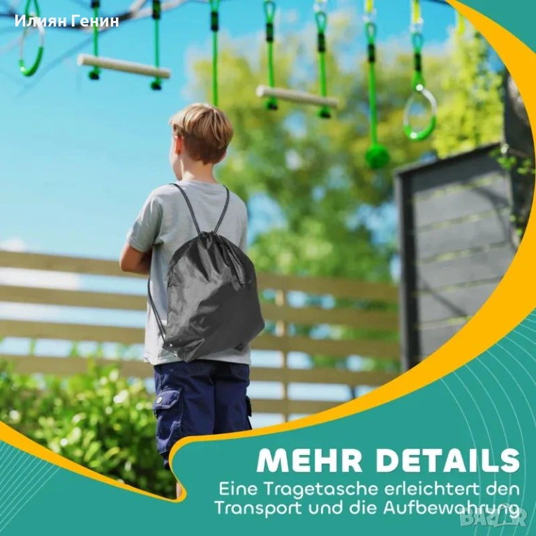 Укрепва мускулите по време на игра: Люлеенето и катеренето не само поддържат децата активни, но и подобряват здравето им. Този циплайн подпомага укрепването на ръцете, торса и гърба, като същевременно предлага страхотно забавление на открито.
