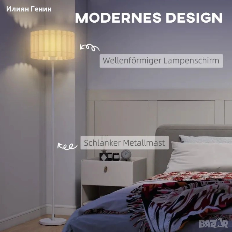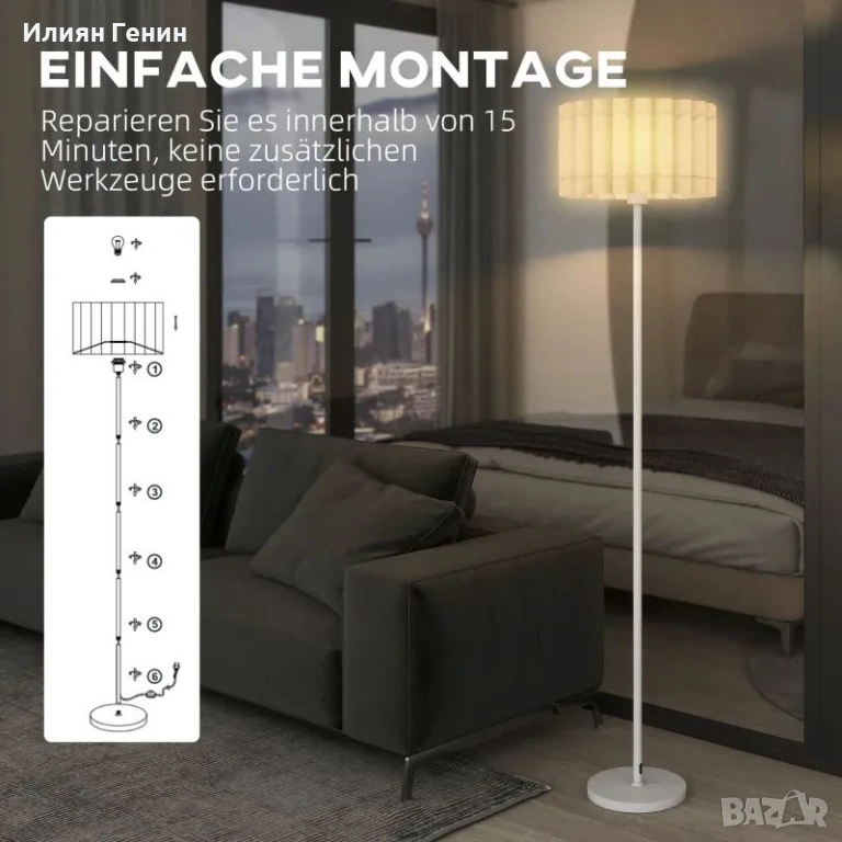 Универсално осветление: Тази подова лампа с фасунга E27 е вашият нов майстор на осветлението. Съвместима е с халогенни и LED крушки и предлага безброй опции за осветление. Изберете идеалната крушка сега, за да осветите перфектно стаята си.