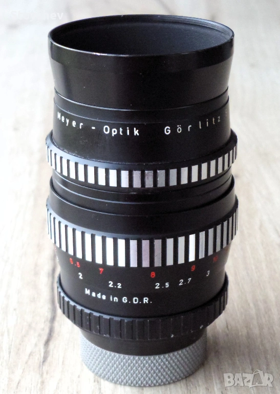 Meyer-Optik Görlitz 135 mm f/2.8 preset. Резба М42, preset, 15 ламела на блендата. Обектив произвеждан в периода 1966-1978г., определян като «Bokeh Monster» и «Bokeh King». Много добро състояние на обектива. Чиста оптика, безупречна механика. Окомплектовка оригинален сенник и две неоригинални капачки.