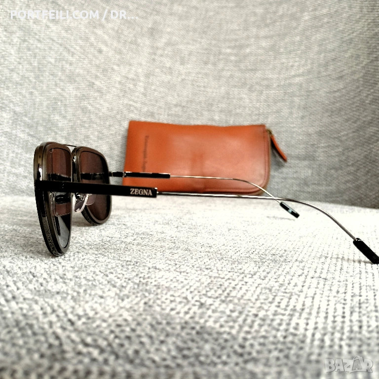 Мъжки слънчеви очила на Ermenegildo Zegna, made in Italy, черен авиатор