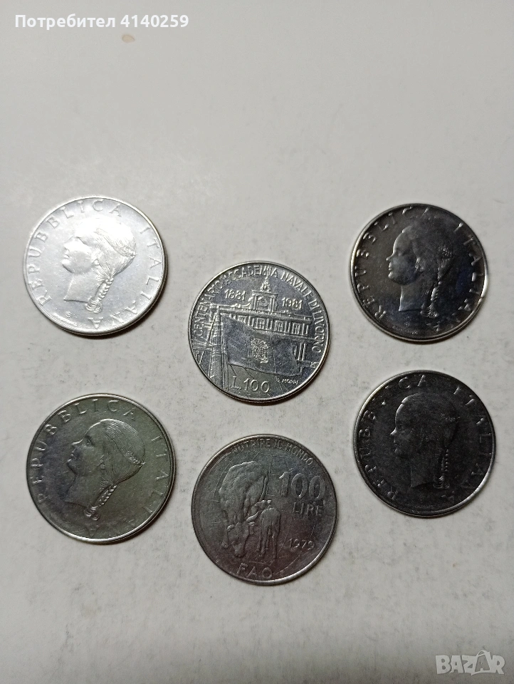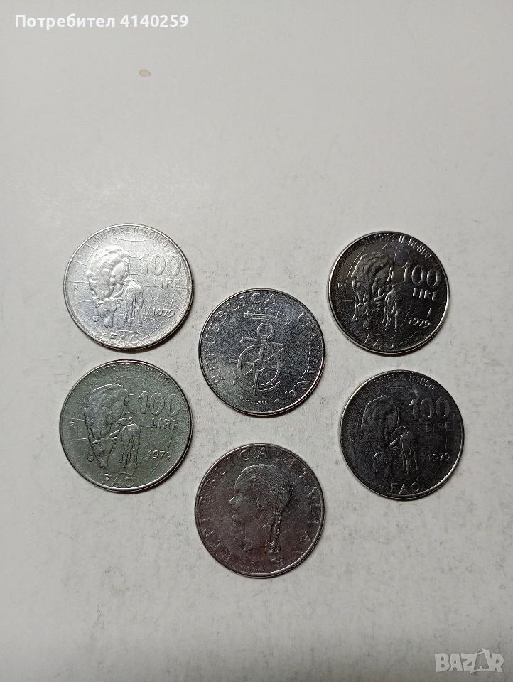 ИТАЛИЯ МОНЕТИ 100 ЛИРИ ФАО 1979-1981 Г НЕЧИСТЕНИ ЦЕНА ЗА 6 БРОЯ СЪСТОЯНИЕ ОТЛИЧНО ПОЛУЧАВАТЕ СНИМАНАТА МОНЕТА РАЗГЛЕДАЙТЕ ДРУГИТЕ МИ ОБЯВИ ДА КОМБИНИРАТЕ ДОСТАВКА ЕКОНТ ЗА ВАРНА ЛИЧНО