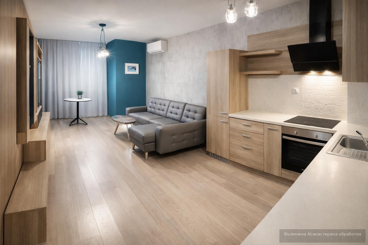 Разполага с площ 70кв.м. разгърната в следното разпределение: входно антре, хол с кухненски бокс, спалня, баня с тоалетна и тераса.