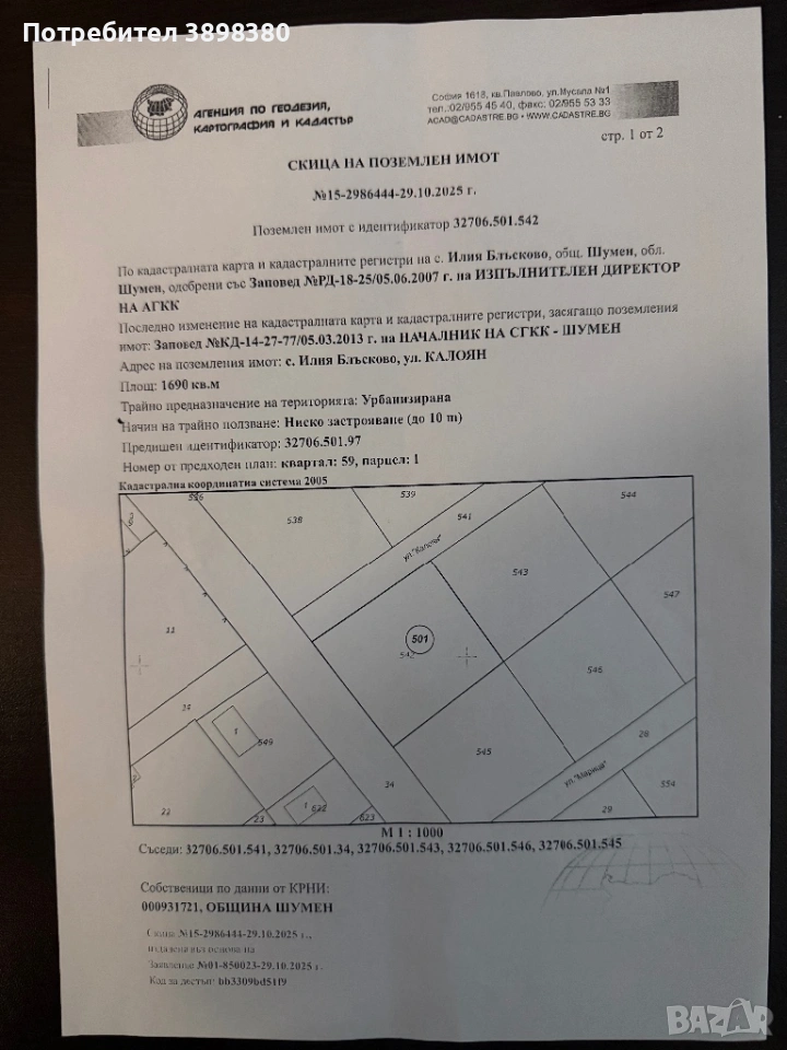 Продавам парцелв 1690кв.м село Илия Бласков обл.Шумен → Обява 53614073