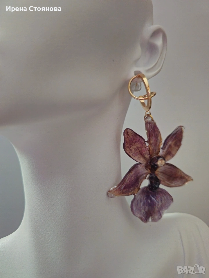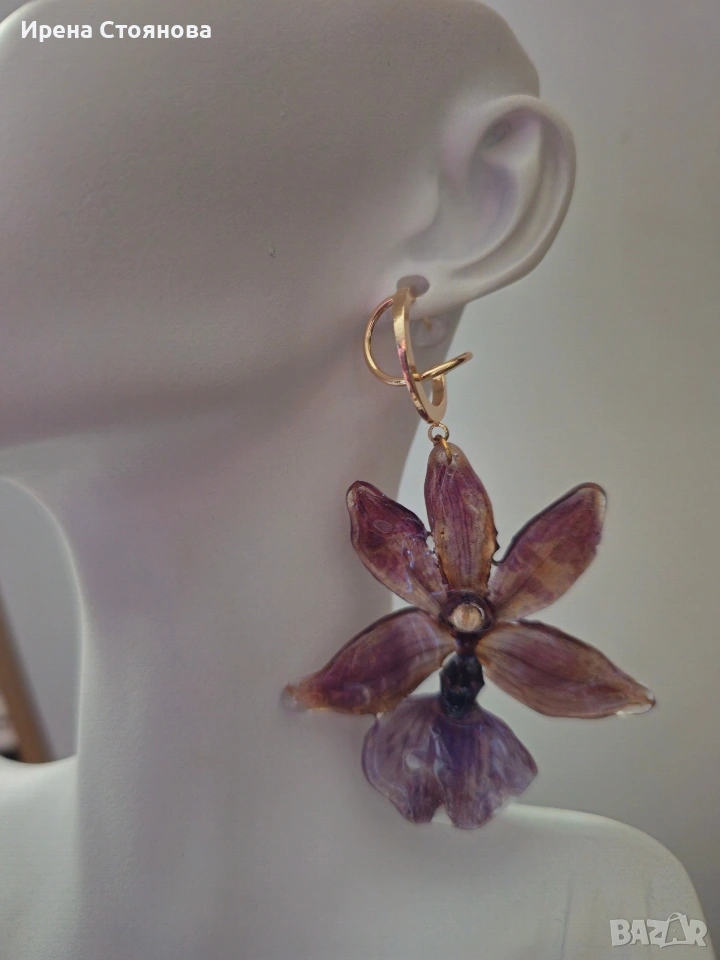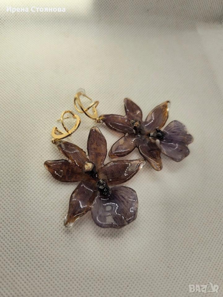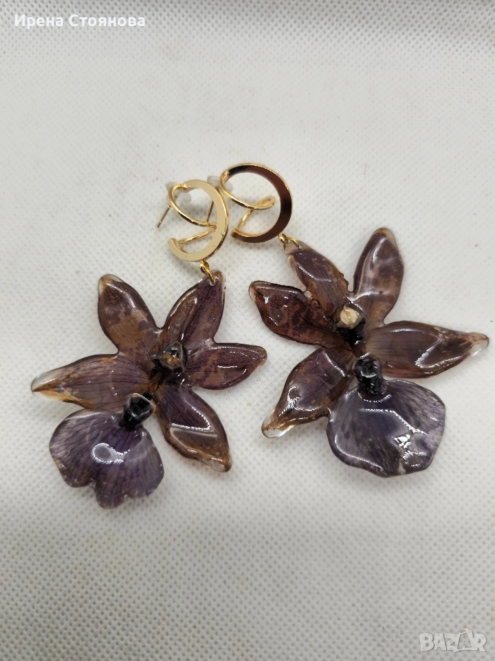 Обеци с естествен цвят на орхидея Miltonia. → Обява 53614108
