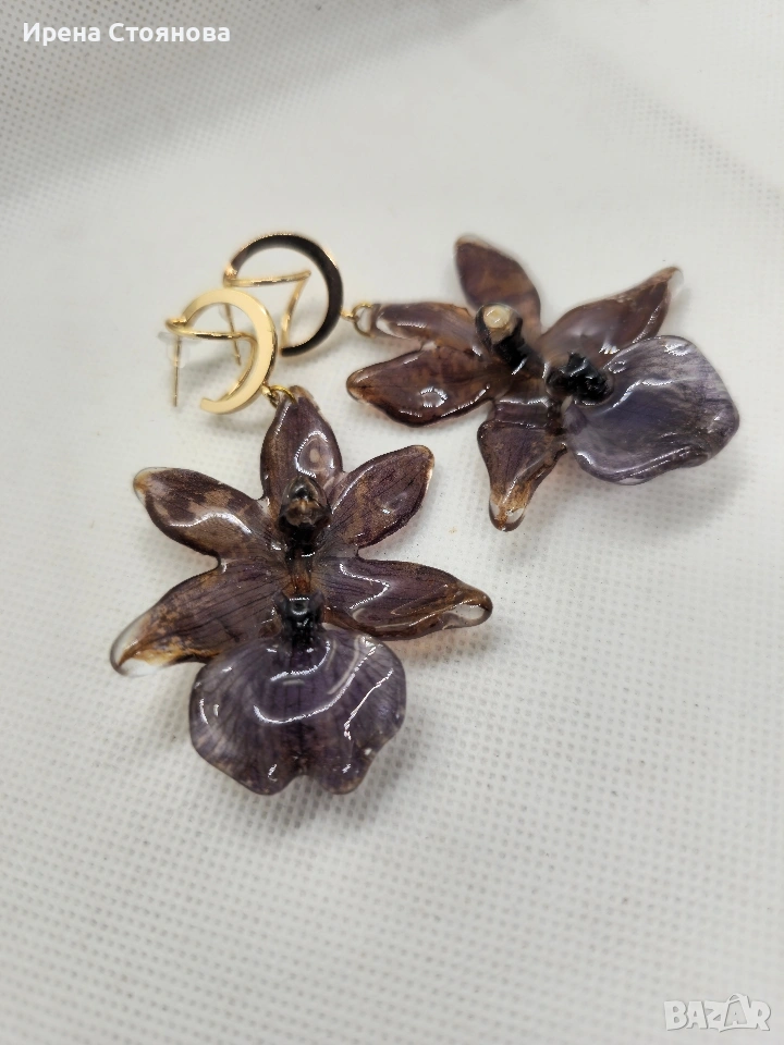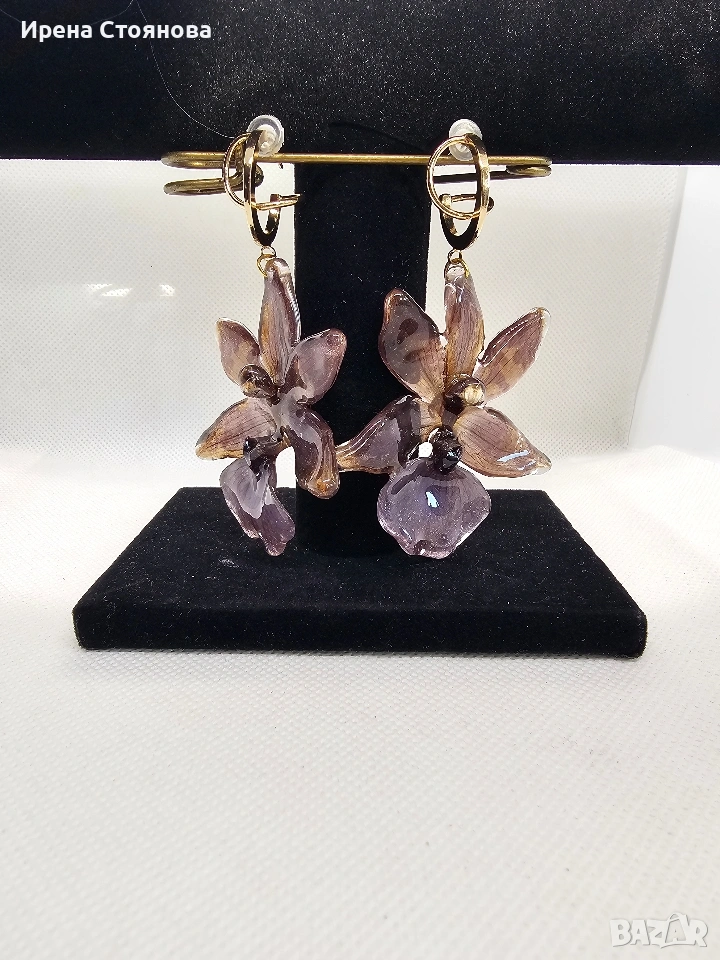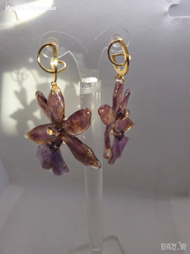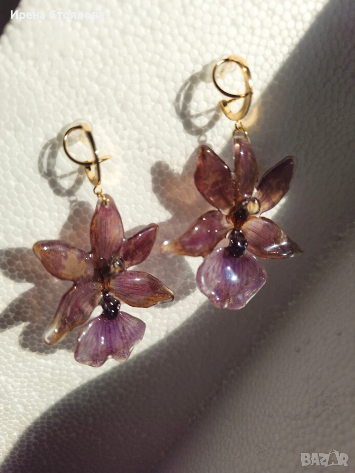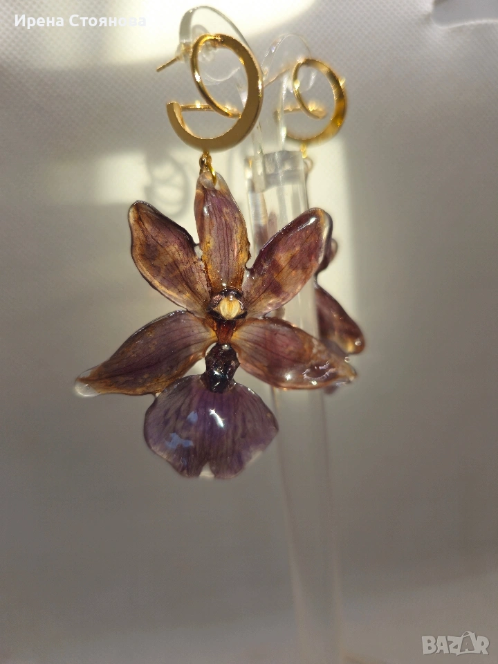 Обеци с естествен цвят на орхидея Miltonia. → Обява 53614108