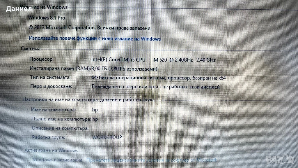 Лаптопа е почистен от прах , преинсталиран , активиран и със сменена термо паста.Работи отлично