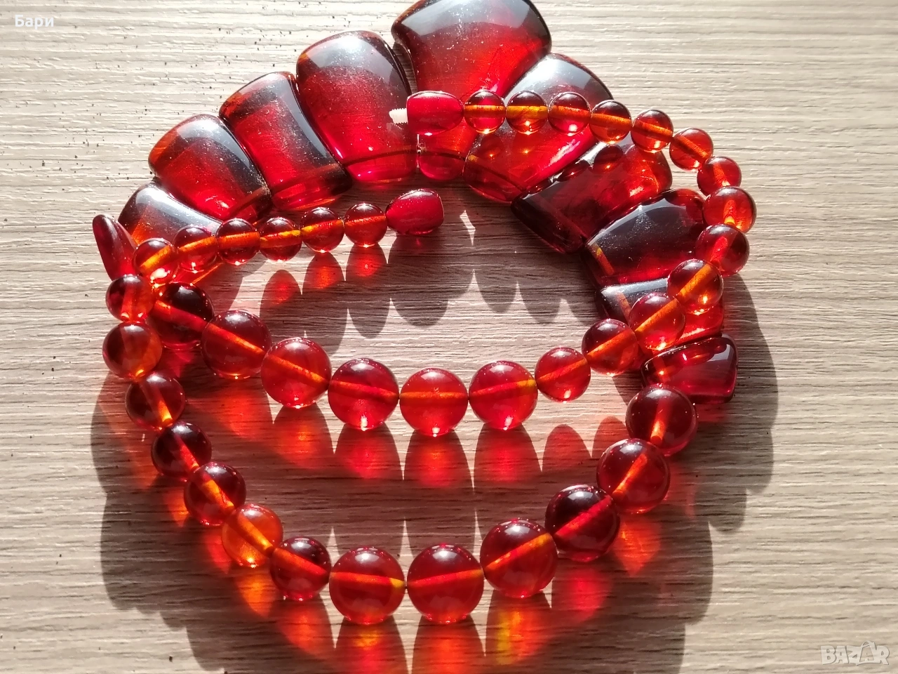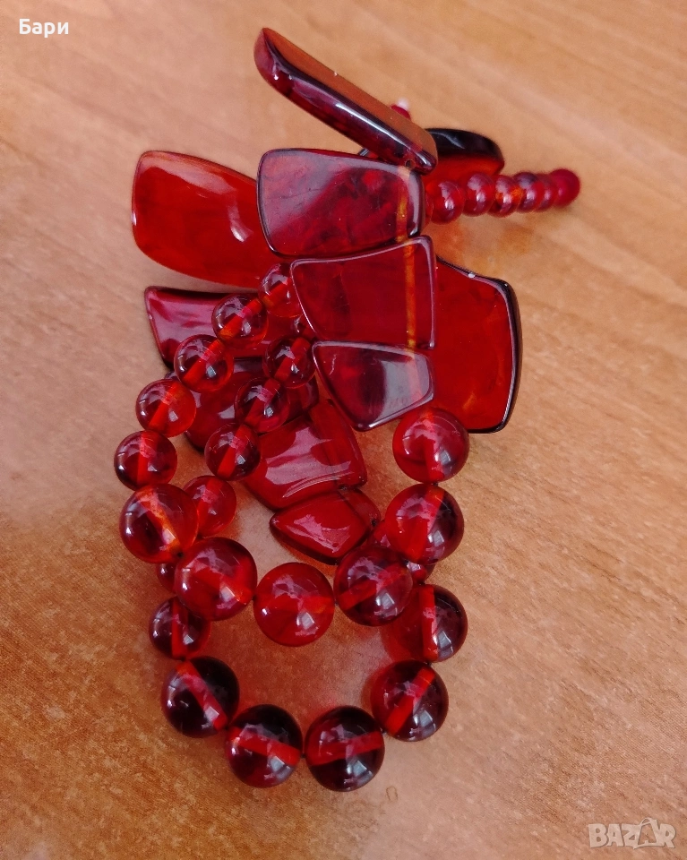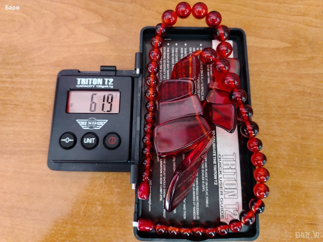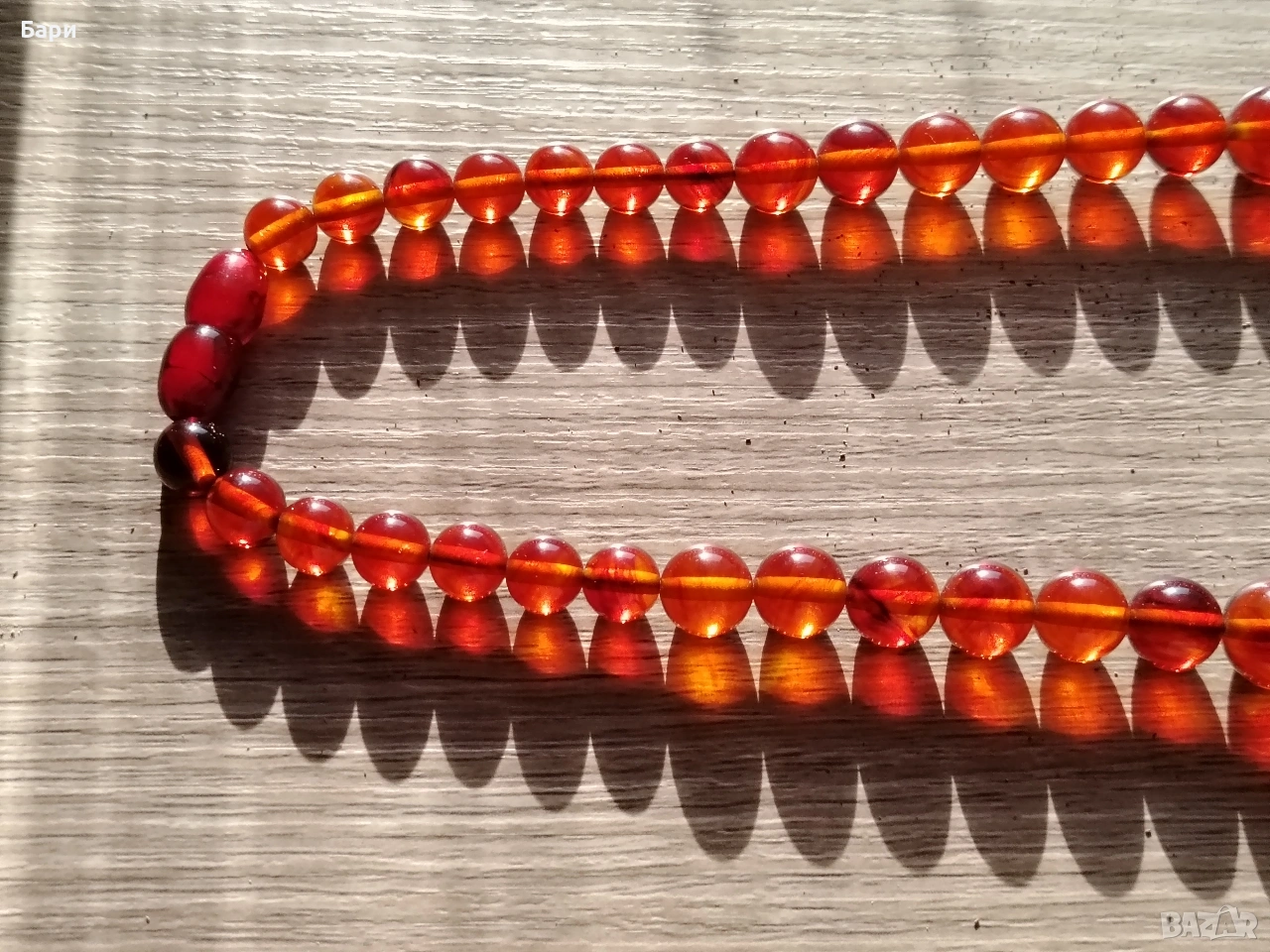 Размер:дължина 52,5 см.,диаметър на зърната ,oт 0,8 до 1,2 см.,тежи 63,3 гр.,височина на висулките ,от 1,7 до 5,7см.,тежи 61,9 г.