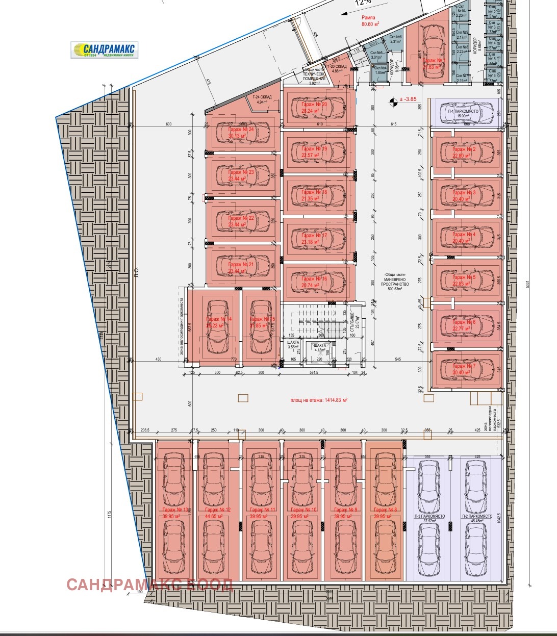 Гаражи: 24 бр.
