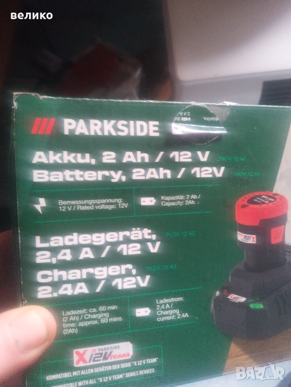 Продавам батерия със зарядно на paRkside 12 волта чисто нови не са използвани.