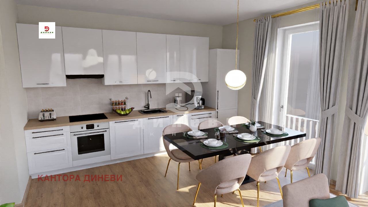 Кантора Диневи предлагаме тристаен апартамент с южно изложение, разположен на 6-ти последен етаж, с площ от 80 кв.м. отличен избор за семейства, които търсят светлина, комфорт и функционално разпределение. Апартамента разполага с входно антре, две спални, всекидневна с обособена кухненска част, тераса, баня с тоалетна и изба. Сградата е с Акт 14 и се изпълнява от качествен и доказан строител с утвърдено име на пазара