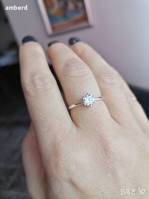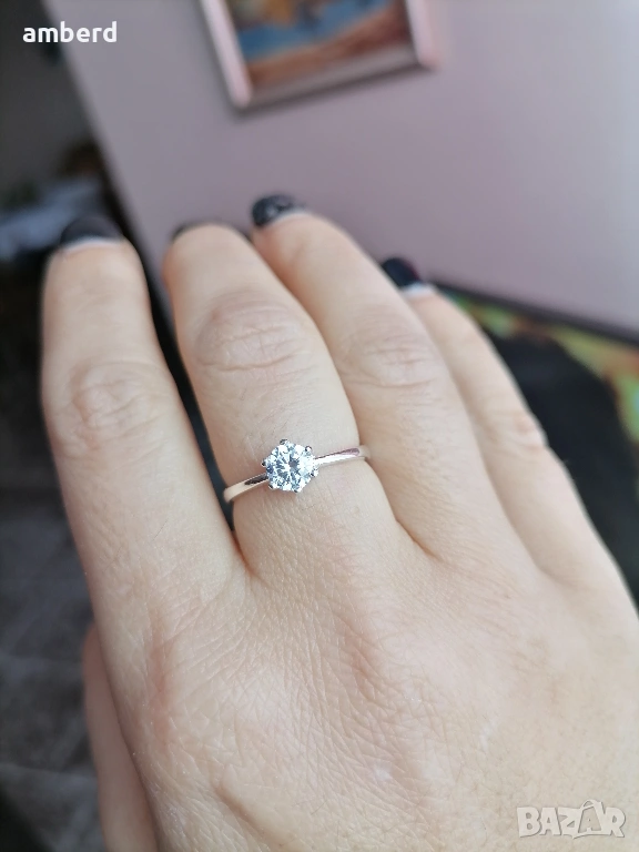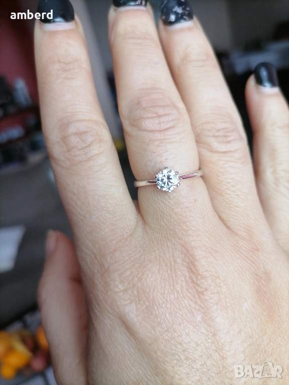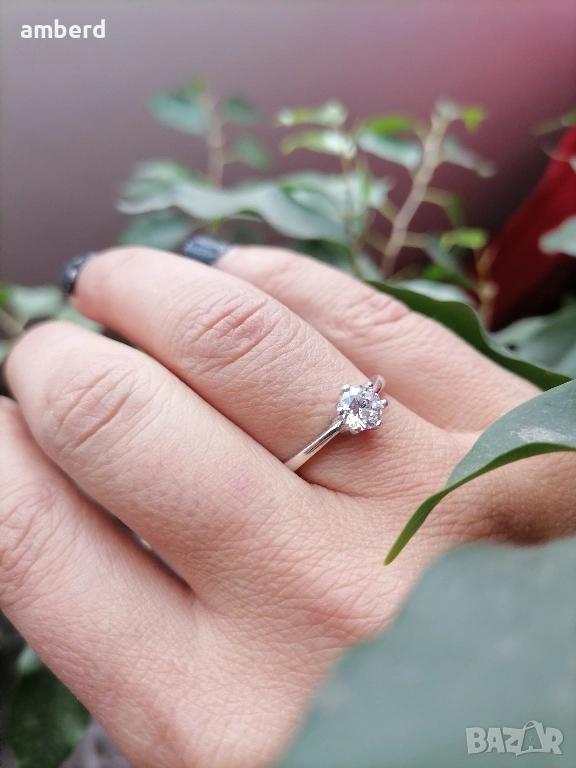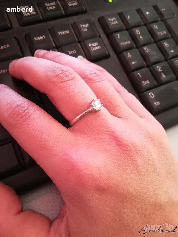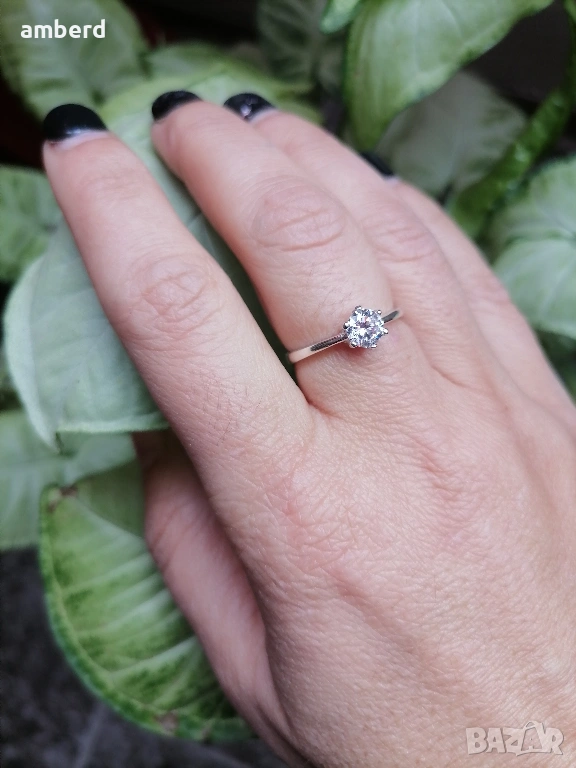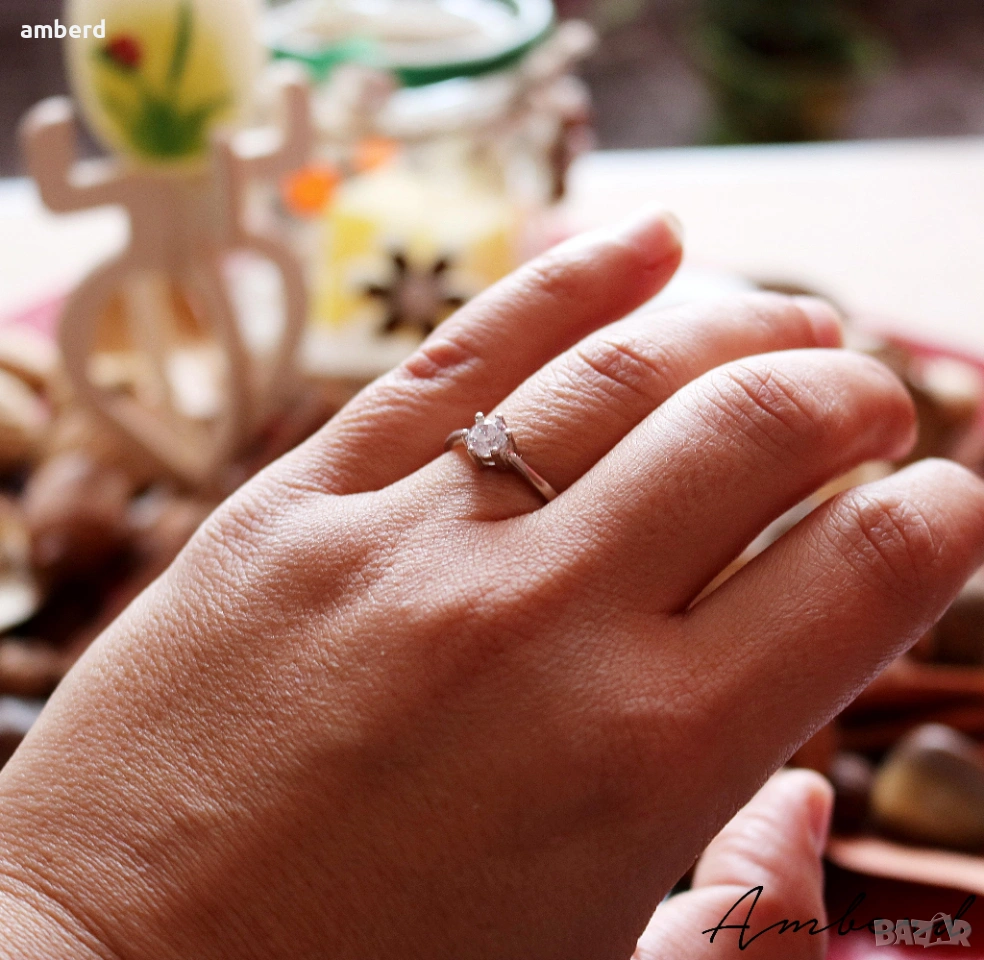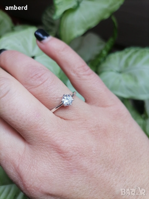 Изключително нежен и елегантен пръстен, изработен от сребро проба 925 и 1 бял цирконий. Вътрешен диаметър 17.8мм.