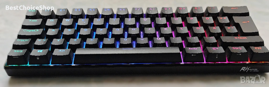 - Мини 60% клавиатура: Геймърската клавиатура RK61 mini 60% е ултракомпактна с 61 клавиша, която ви прави спретнат десктоп с организирани устройства. Дори хора, които нямат нищо общо с минималистичния дизайн, ще се потопят в малкия ѝ практичен дизайн. Съвет, който може би искате да знаете, е, че клавиатурата без цифров блок е избор на повечето FPS геймъри, като се оставят повече места за движения на мишката.