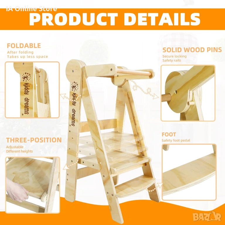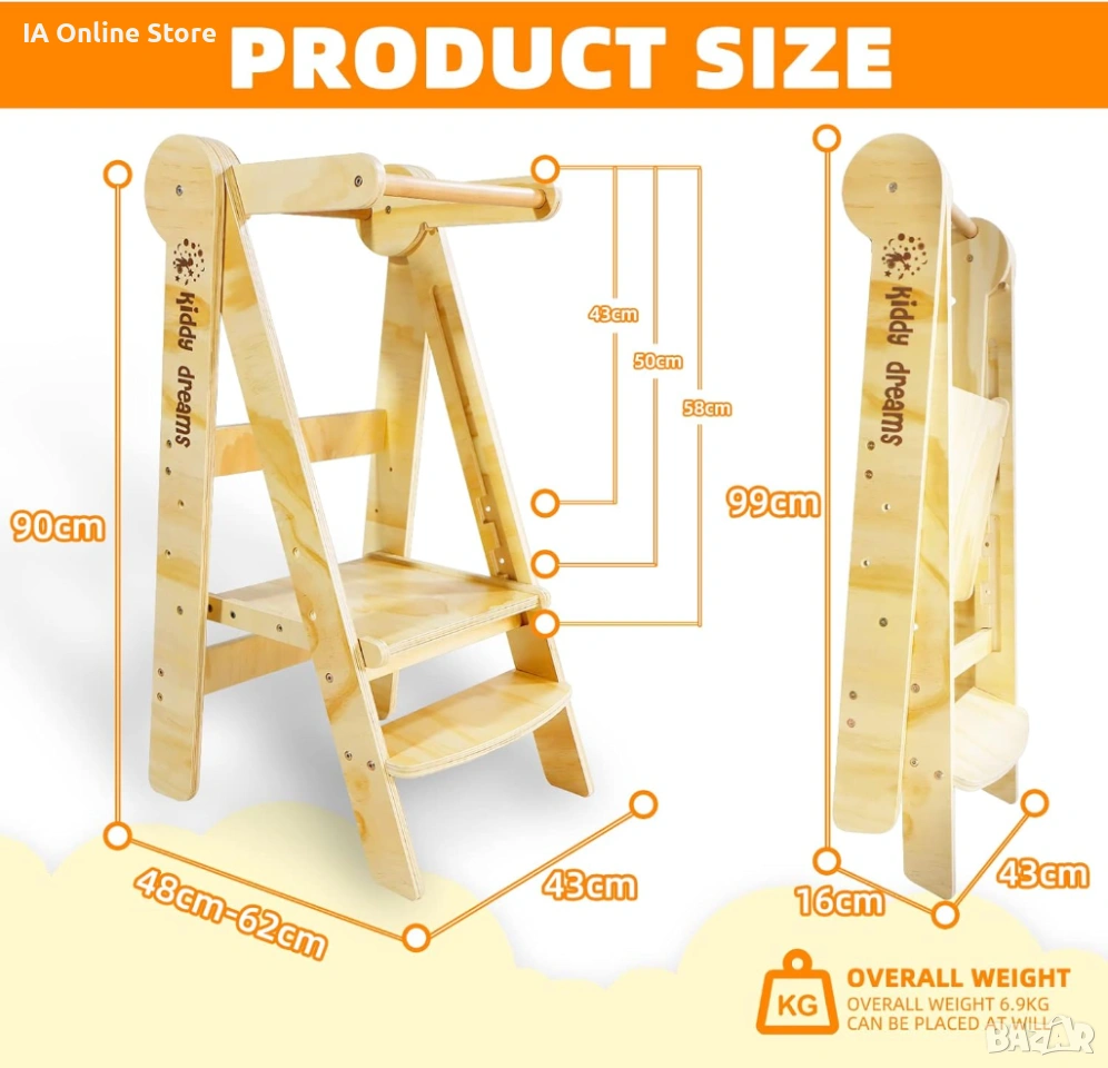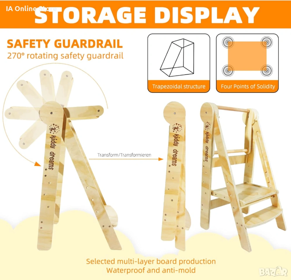 Сгъваема кула на Монтесори Kiddy Dreams с три нива на височина. Характеристиките и може да видите в прикачените снимки. Ползвана е много рядко и няма почти никакви следи от упореба.