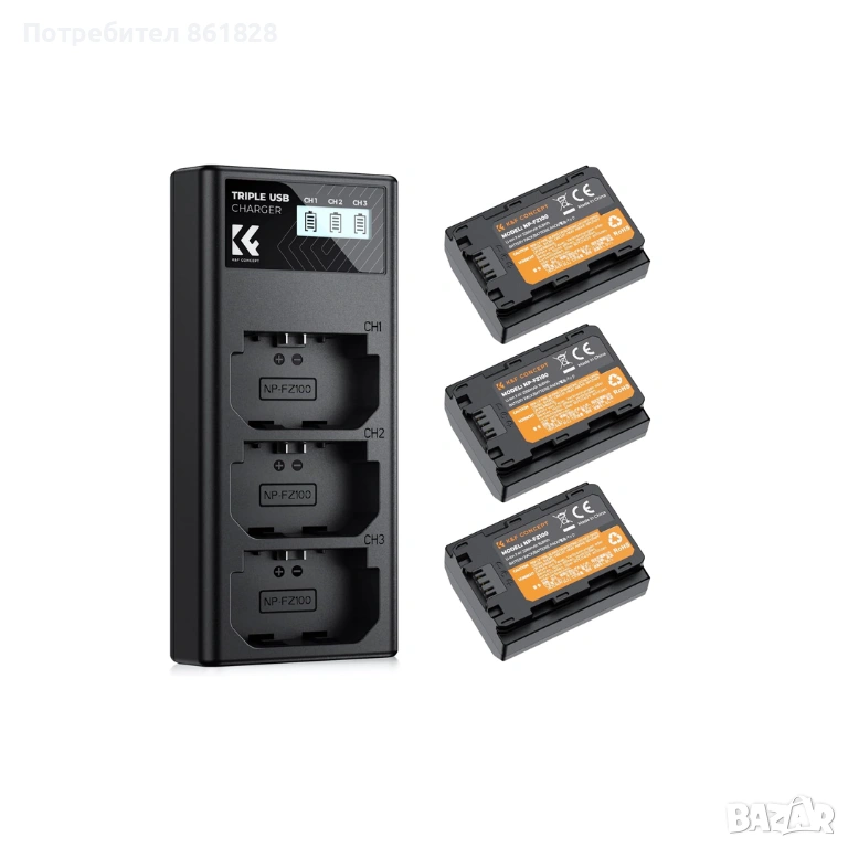 Комплект от три батерии K&F Concept NP-FZ100 + Тройно зарядно с LCD дисплей