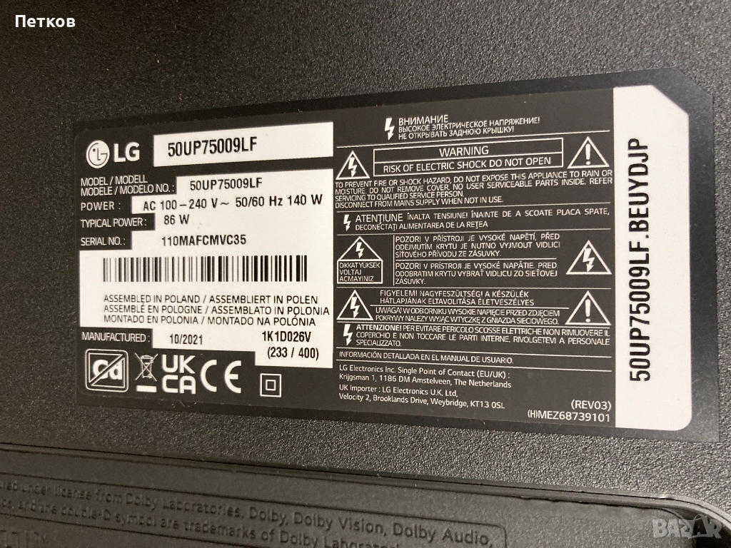 Работещи платки от телевизор с дефектен(бримка) дисплей.