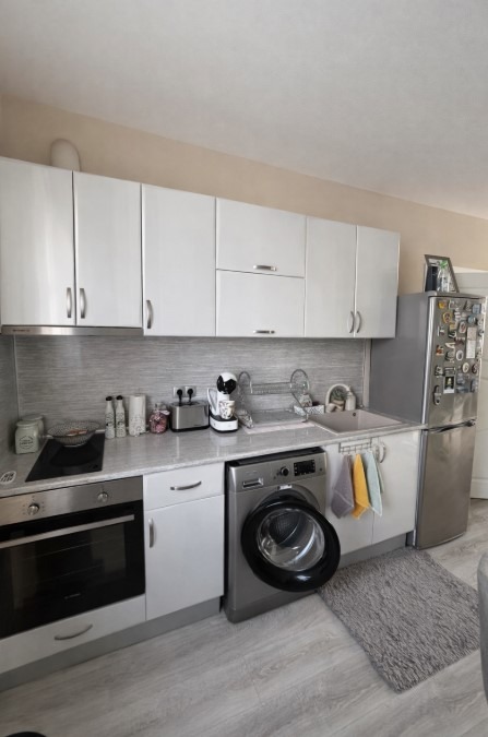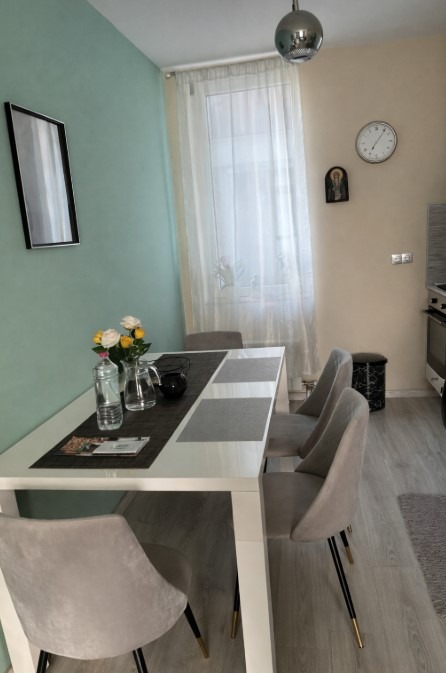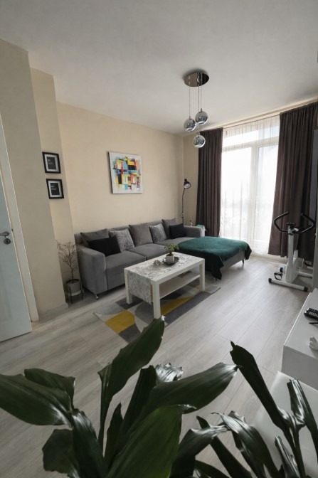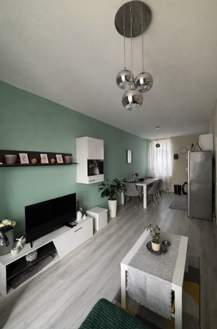 Имотът е обзаведен, с площ 60 кв.м, на 6-ти етаж от 10 етажа в сграда с асансьор. Разпределението включва входно антре, дневна с кухня и трапезария, спалня, баня с тоалетна и тераса.