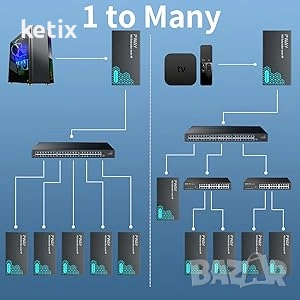 Поддържа TCP/IP, приложения „едно към много“ и Ethernet комутатори и може да свърже до 253 приемника.