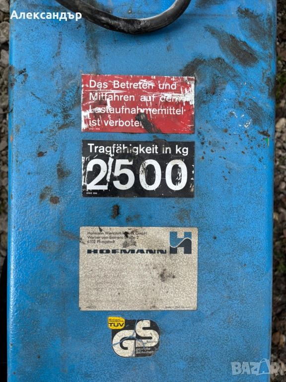 Продавам винтов подемник Hofmann до 2.5 тона. Внос от Германия.