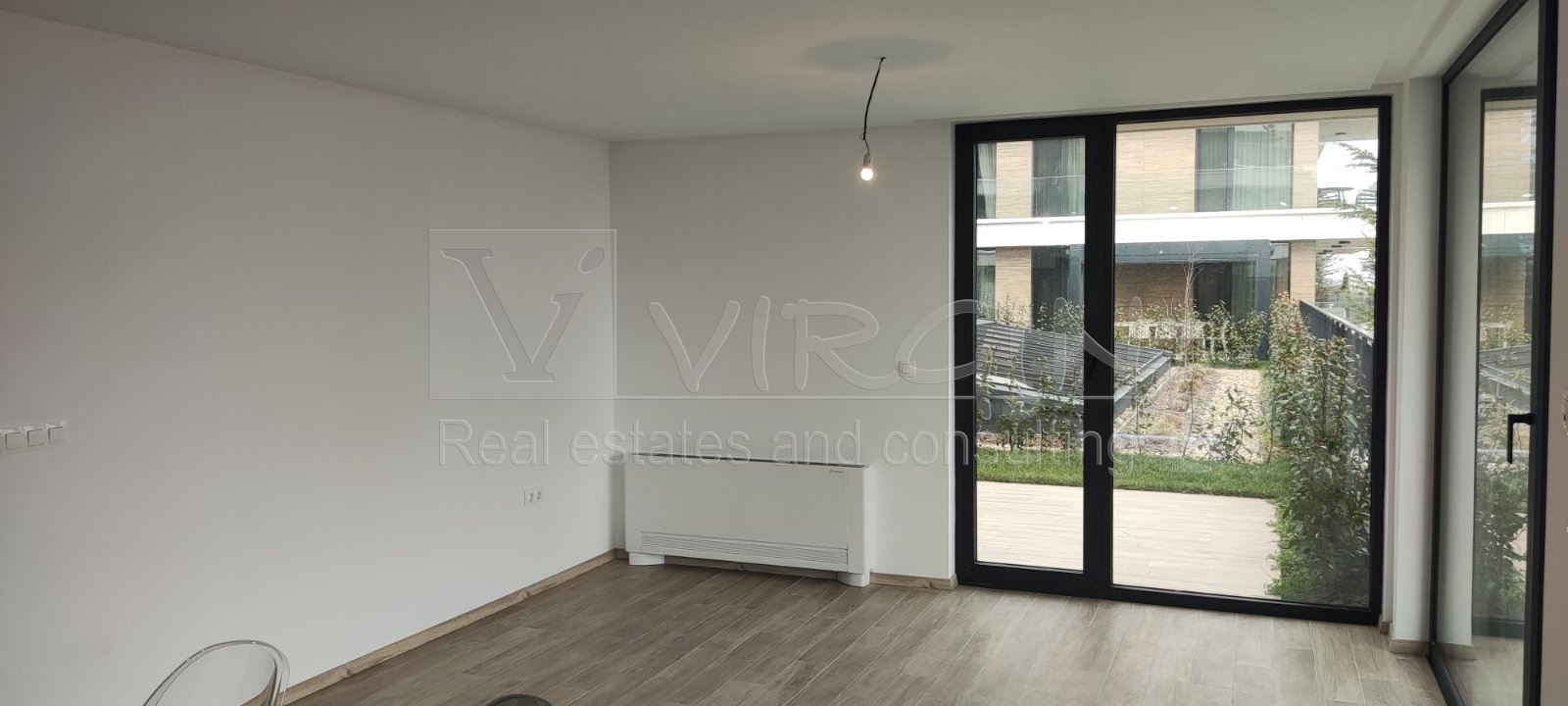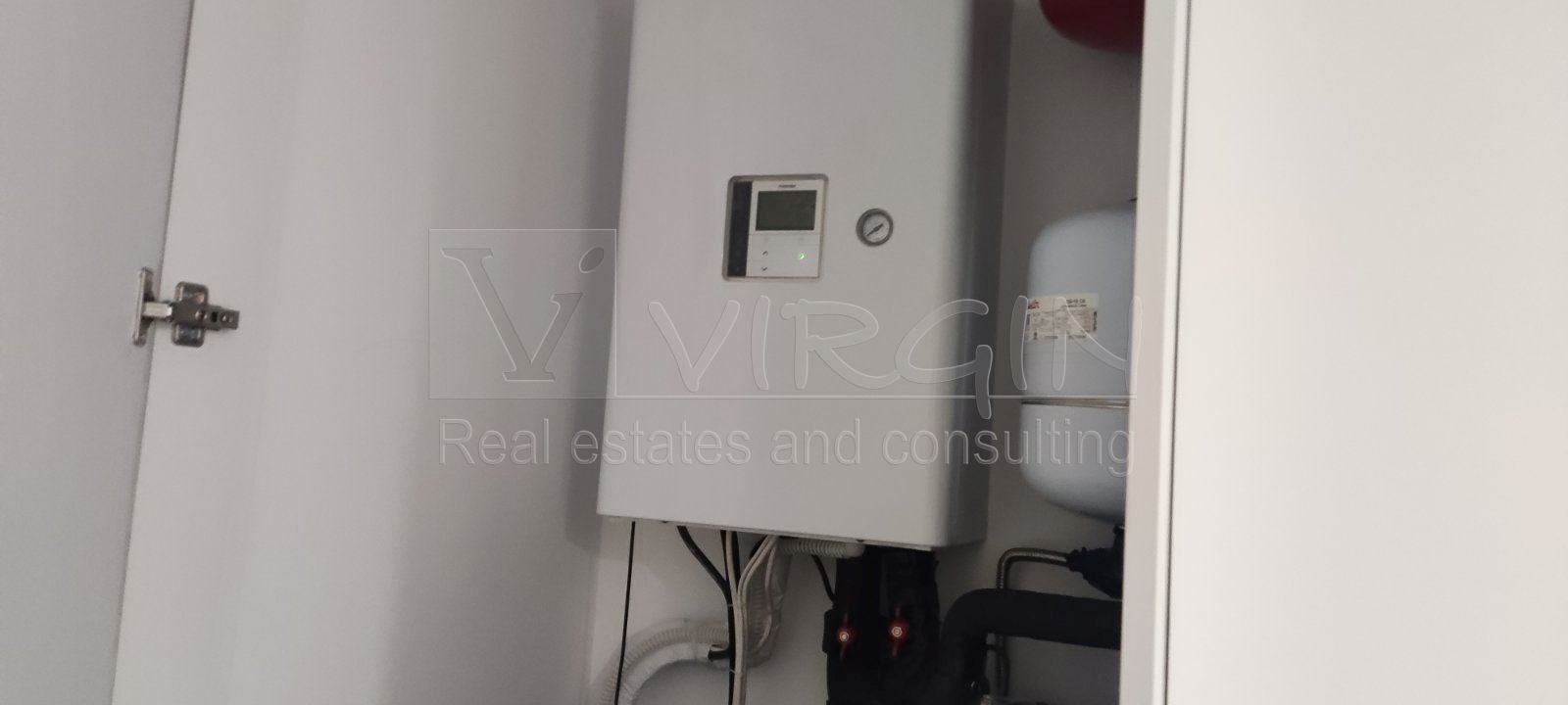 Апартаментът е завършен и се продава с обзавеждането на снимките. Инсталирана термопомпа за подово отопление, интериорни врати, готови оборудвани бани. Кухнята е по интериорен проект. Към имота се предлагат и две подземни паркоместа в просторен подземен паркинг на цена от 39000 евро всяко.
