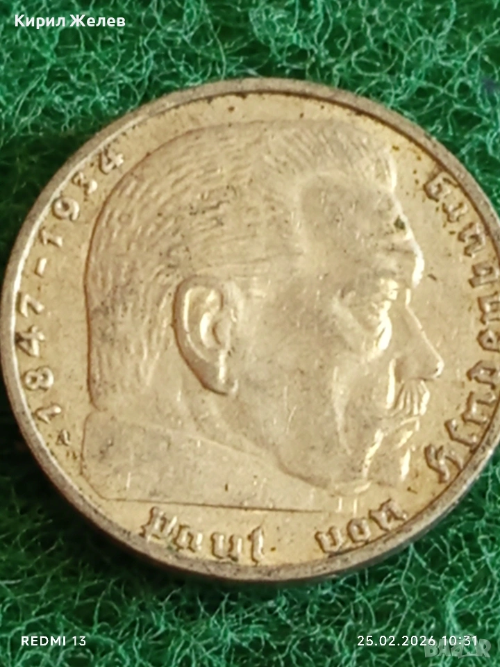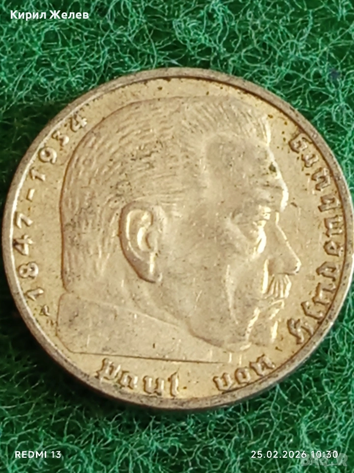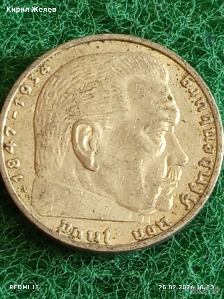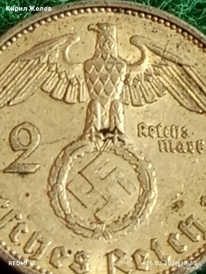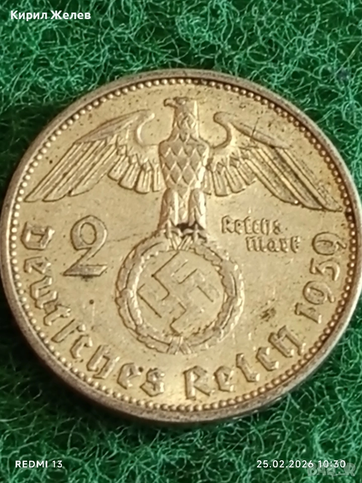 Сребърна монета 2 райхсмарки 1939г. Германия Трети Райх с Свастика за КОЛЕКЦИОНЕРИ 53141 → Обява 53615068
