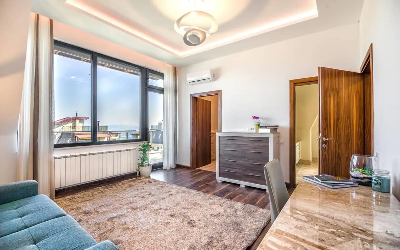 Предимства на имота: светъл и просторен на комуникативна локация. Намира се в непосредствена близост до парк, спирки на градски транспорт, заведения, хранителни магазини, училище, детска градина и търговски обекти. Къщата разполага с КАМИНА, КЛИМАТИК във всяка стая, ТЕЛЕВИЗОРИ, СЪДОМИЯЛНА машина и др. удобства.