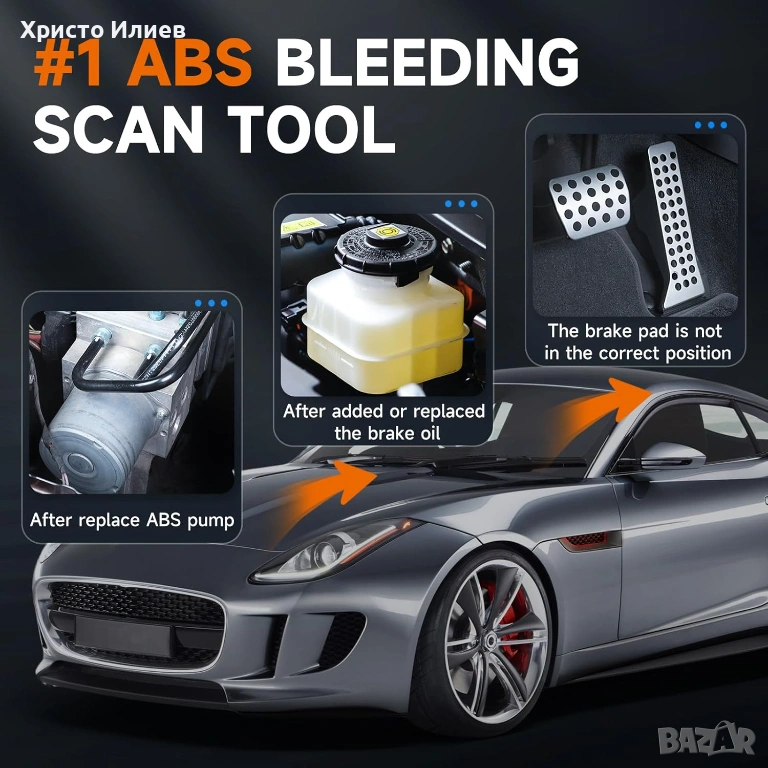 Обезвъздушаване на ABS (Auto Bleed): Поддържа автоматично обезвъздушаване на антиблокиращата спирачна система, за да се отстрани въздухът от спирачната система (функциите зависят от модела на превозното средство).