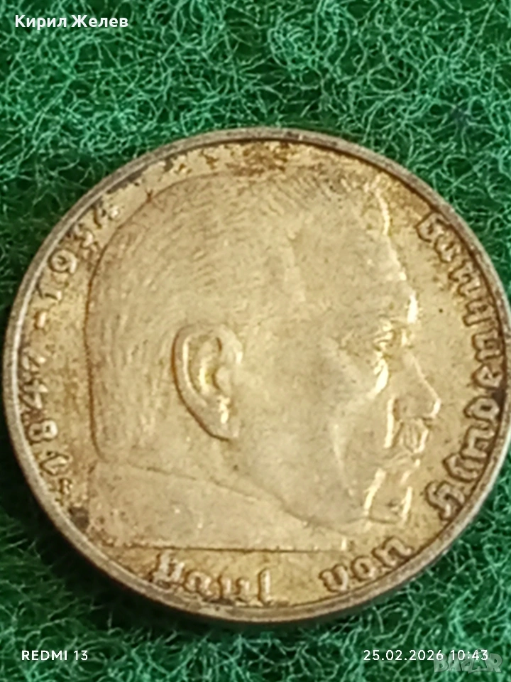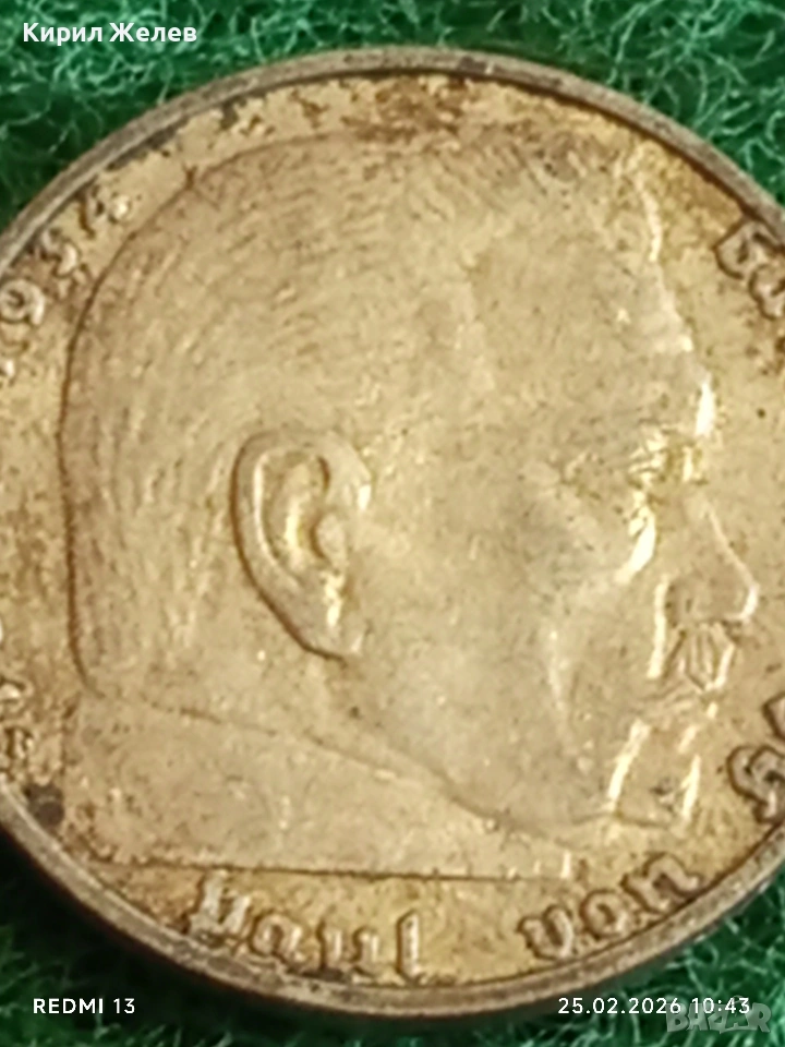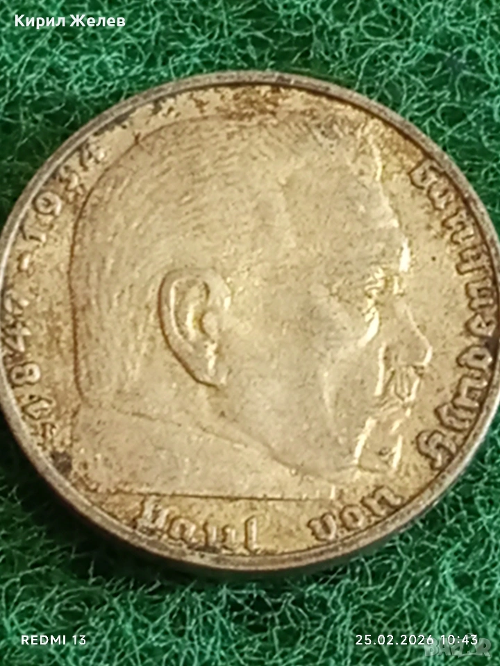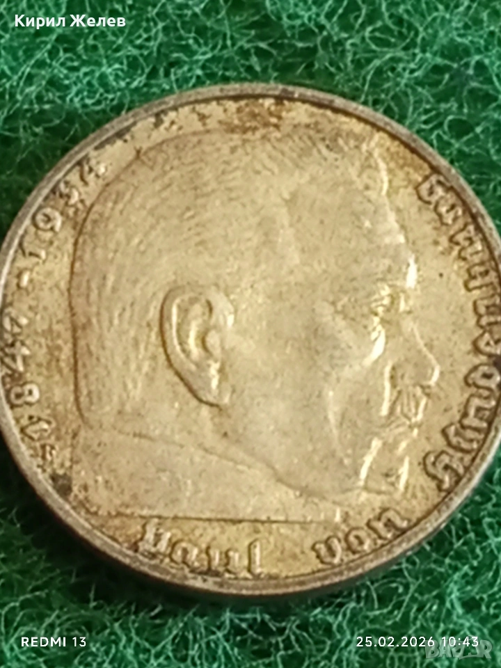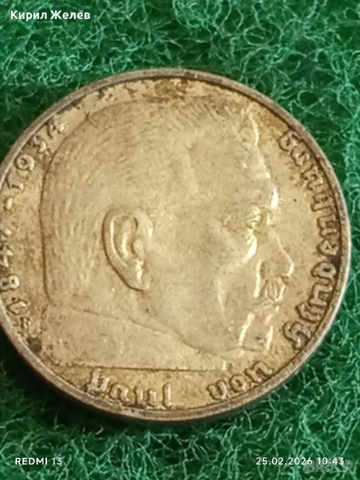 Сребърна монета 2 райхсмарки 1938г. Германия Трети Райх с Свастика за КОЛЕКЦИОНЕРИ 37821 → Обява 53615216