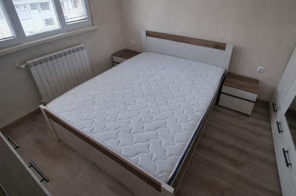 Имотът е обзаведен, с площ 67 кв.м, на 5-ти етаж от 6 етажна сграда с асансьор. Разпределението включва входно антре, дневна с кухня и трапезария, две спални, баня с тоалетна и тераса.