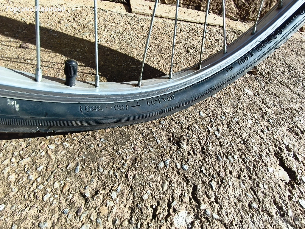 Гуми: Размер 26 x 1.90 инча . Този размер е стандартен за по-старите планински велосипеди и предлага добър баланс между скорост и стабилност.
