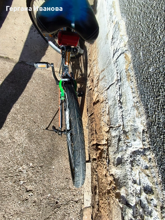 Екстри: Велосипедът е оборудван с "рога" на кормилото за по-удобен захват при изкачване, калници (пластмасови), степенка и светлоотразители.