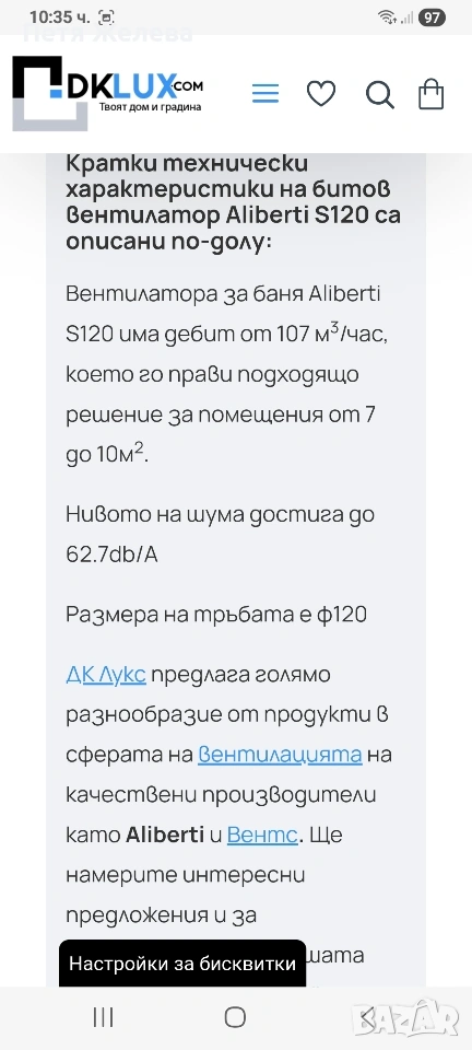 Вентилатор за баня ALIBERTI S 12 → Обява 53615312
