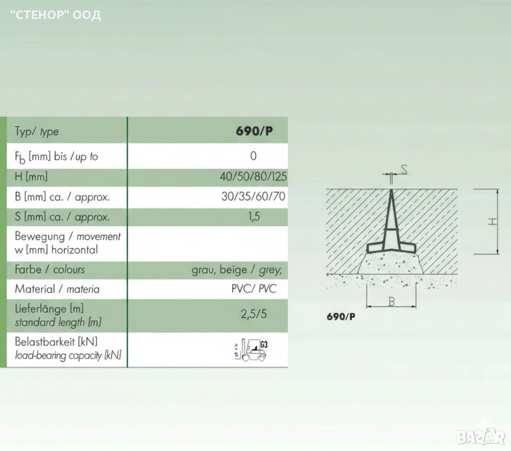 ПВЦ профил за изпълнение на дилатационна фуга в бетона произведен от нашите партньори от "Deflex Fugensysteme" GmbH. Този профил замества досадното и скъпо рязане и запълване на технолигчни фуги след наливане на бетон на плоча.