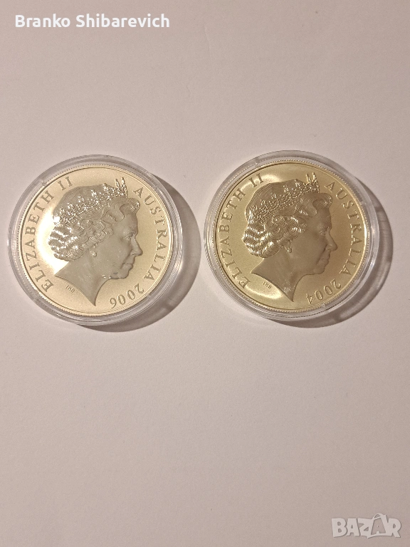 Предлагам лот от оригинални сребърни монети от Австралия 2004 и 2006г. , 2/1oz ( ag.999 ).