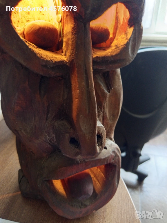 5- дървена ретро лампа ръчно изработена с светеща и мигаща с релета очи и уста диаметър 18см вичочина 40см , цена 100лева