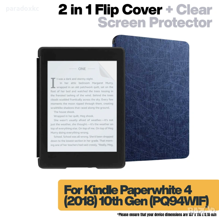 Калъф + протектор за Kindle Paperwhite 2018 (10th Gen) - Тъмносин, снимка 1 - Електронни четци - 53615462 Калъф + протектор за Kindle Paperwhite 2018 (10th Gen) - Тъмносин, снимка 2 - Електронни четци - 53615462 Калъф + протектор за Kindle Paperwhite 2018 (10th Gen) - Тъмносин, снимка 3 - Електронни четци - 53615462 1/3
