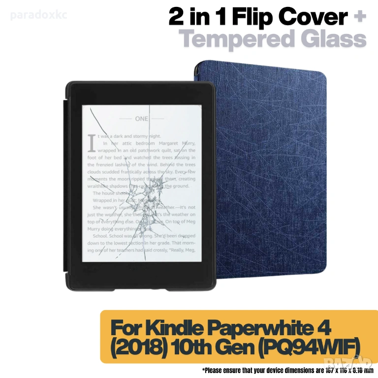 Kомплект калъф + фолио протектор или калъф + стъклен протектор за Kindle Paperwhite 2018.