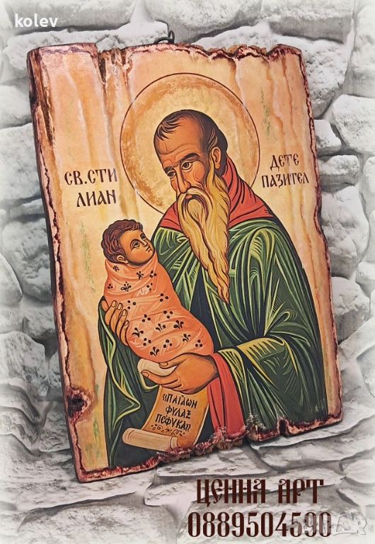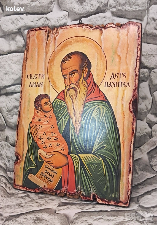 Икона на св. Стилиян Детепазител 25/18 см, художествен декупаж