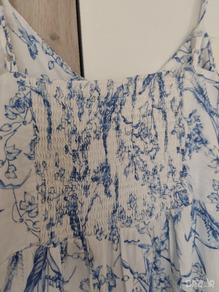 С тънки регулиращи се презрамки, копченца до долу, гърбът е набран с ластичета.