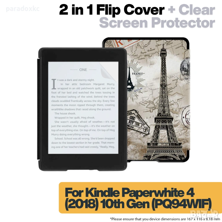 Калъф + протектор за Kindle Paperwhite 2018 (10th Gen) - Eiffel Tower, снимка 1 - Електронни четци - 53615632 Калъф + протектор за Kindle Paperwhite 2018 (10th Gen) - Eiffel Tower, снимка 2 - Електронни четци - 53615632 Калъф + протектор за Kindle Paperwhite 2018 (10th Gen) - Eiffel Tower, снимка 3 - Електронни четци - 53615632 1/3